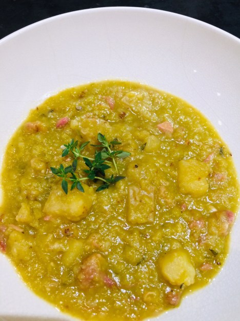 I have to admit, I love a good left-over ham bone. Why? Because it lends so much flavor into the broth of the next recipe you put it into, plus the added meat is a bonus! One of my favorite things to make with a left-over ham bone is split pea soup and normally I make a very basic one, but i decided that I wanted to try something different and boy was I in for a surprise! I never knew split pea soup could be transcended into something that made me excited for seconds and thirds. This recipe turned split pea soup from basic to sophisticated with all the flavors and the added potatoes made it a filling meal.