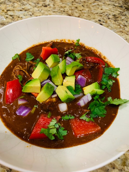 Imagine: the weather man tells you the temperatures will drop to the low twenties later in the week. What do you do? I took all my plants in and decided an adjusted spicy chili recipe from America’s Test Kitchen will keep me warm during this arctic front. This chili tastes more like a mole and incorporates a an interesting cheat to get that nutty flavor found in moles: peanut butter!